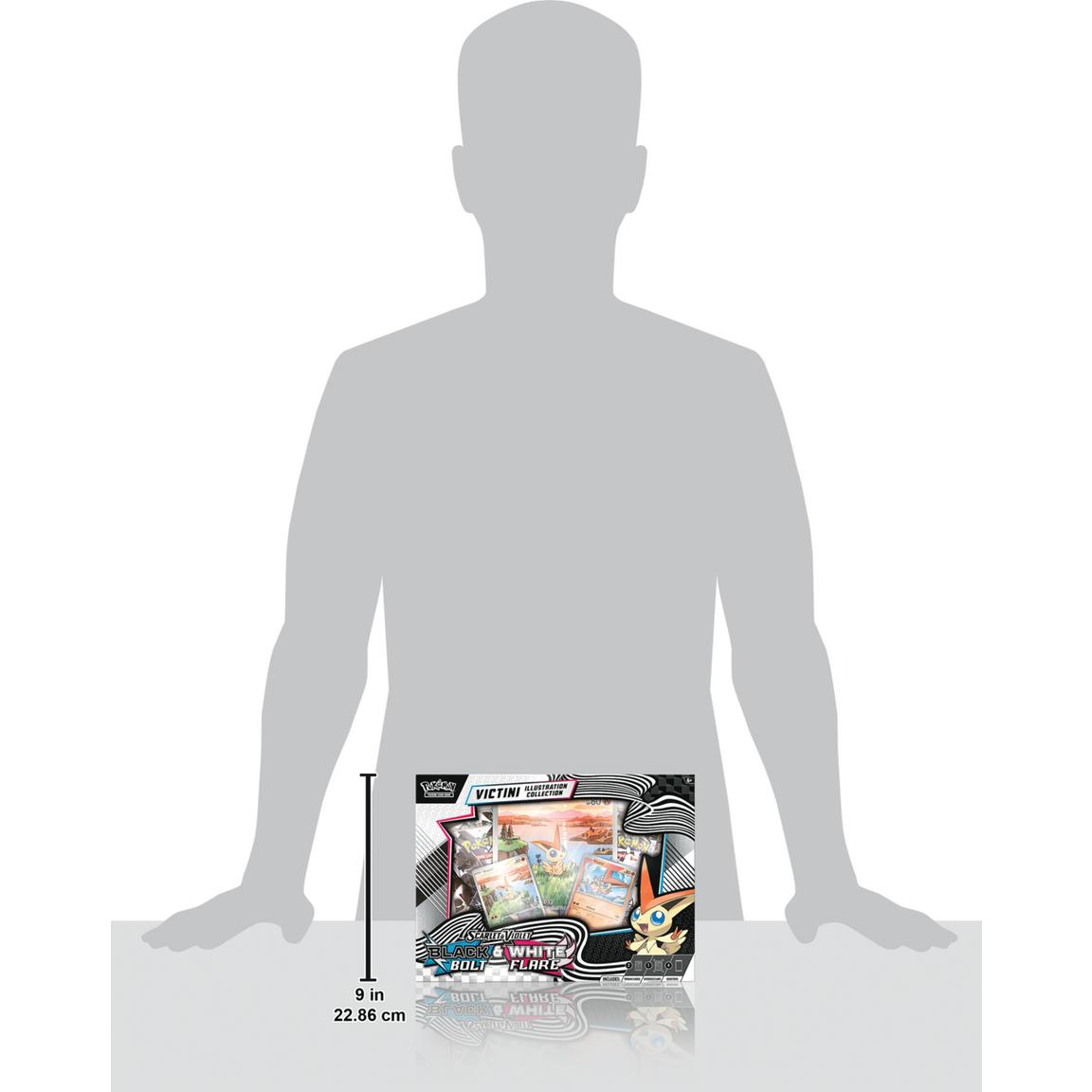 The Mythical Pokémon Victini is said to create infinite energy that it can share with its friends, and now you can team up with it in your own Pokémon TCG decks! In this collection, you get an illustration rare-style foil promo card and a premium parallel foil card featuring Victini, along with an oversize card for display. You’ll find even more Pokémon from the Unova region inside the included booster packs from the special Scarlet & Violet—Black Bolt and Scarlet & Violet—White Flare expansions.